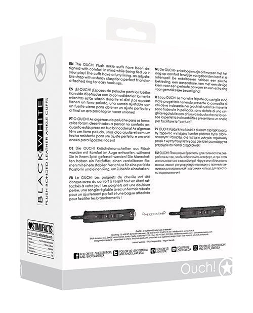 Shots Ouch Black & White Plush Bonded Leather Ankle Cuffs - Black