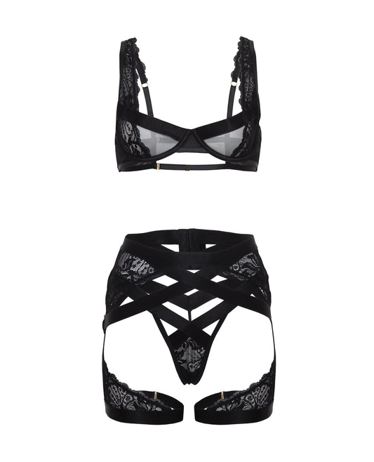 Thalia Mesh & Lace Underwire 3 pc Set - Black MD