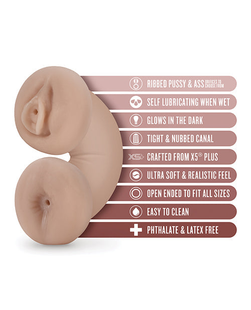 Tasha is your dream AI partner, ready to make your most epic fantasy come true! Featuring a convenient handheld design, this luxurious male stroker provides two ends of penetration with ribbed pussy & ass orifices, offering two points of enhanced pleasure. It is handcrafted with precision using ultra-soft X5® Plus, with self-lubrication technology for soft & wet stroking that makes it hard to last long. It is open ended to fit all sizes and comes equipped with a glow-in-the-dark feature that will light up the bedroom and transcend your sexual experience to new realms. Tasha is way more than just an adult sex toy, this sex machine is your portal to unimaginable pleasure and the thrill of a lifetime. She is here waiting for you, are you up for the adventure?