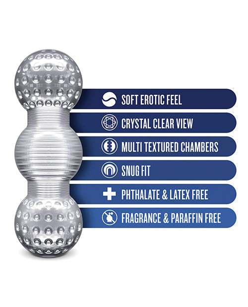The RIZE! Feelz is loaded with fun! Each compartment features an individual texture for different sensations and unparalleled pleasure. Watch as you play inside the translucent compartments and squeeze for your desired pressure preference during stroking. Feelz is easy to clean and contains no phthalates, paraffins, or latex.