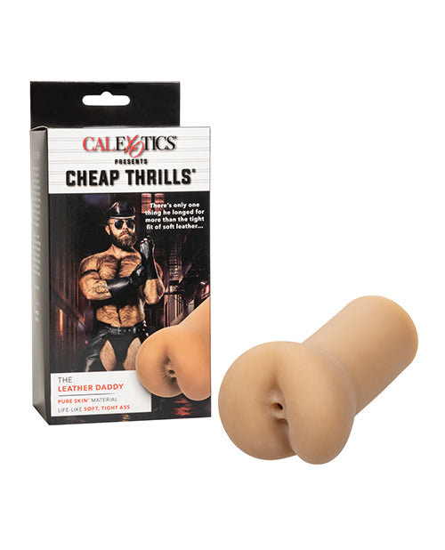Indulge in thrilling wet dreams with the naughty Cheap Thrills® The Leather Daddy masturbation stroker. The closed-end design provides superior suction, while the multi- textured chamber and ultra soft, stretchy Pure Skin® material thrills with life-like sensation. The superior suction and thrilling texture are made to wrap every inch of you with knee-shaking stimulation.