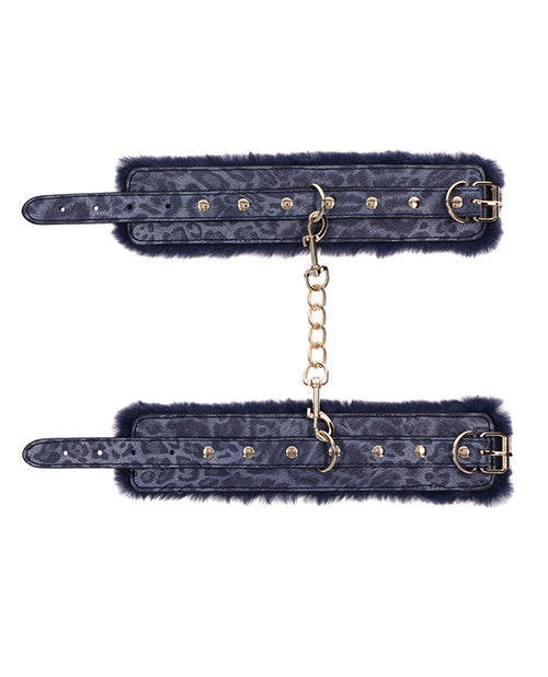 Embrace the allure of playful restraint with the Cougar Fur Handcuffs. Luxuriously lined with a rich blue faux fur and accented with gleaming gold hardware, these handcuffs are designed for sophisticated seduction. Ideal for adventurous play, they offer both comfort and style, ensuring your intimate moments are unforgettable.