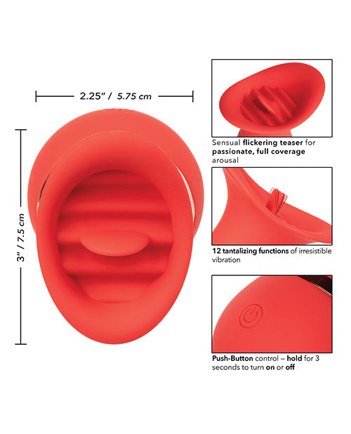 The tantalize French Kiss Charmer is a travel-ready flickering tongue teaser made for sensual stimulation. The compact massager fits just between your fingers to deliver powerful flickering pleasure with 12 sensual functions of flickering action through the full encase and tongue-like tip.