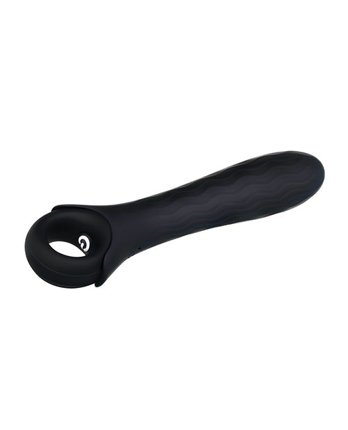 A super strong vibe for power lovers! Slip a digit through the loop handle for a steady grip - because you're going to need it! Amp up the motor through 12 zippy speeds and pulsing functions to feel the force wherever you desire it most. The wavy textured shaft and creamy silicone body is flexible to move with your body whether you're exploring inside or out, even under water as it's completely submersible. Recharge anytime via USB to keep top speeds robust and ready to please.