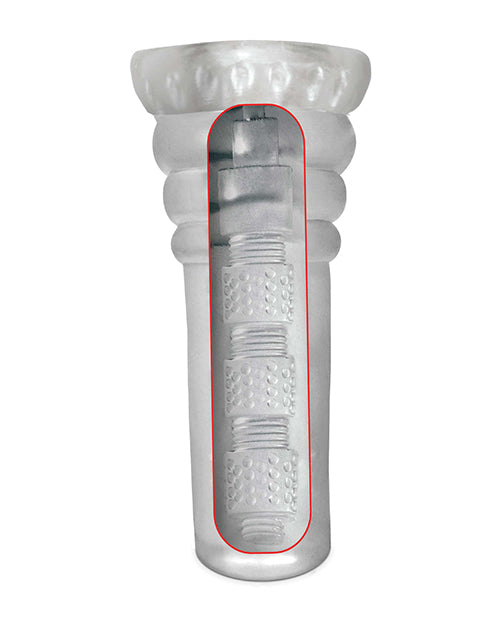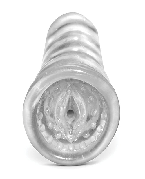 Get ready for the most realistic pussy simulator ever created! The Pipedream Extreme HEAD-Master Snatch is the ultimate handheld jack-off sleeve developed for maximum ball-blasting climaxes. The soft pussy lips wrap around every inch of your pleasure rod and cling to your cock with each stroke. Once inside, hundreds of tiny love nodules and ribbed spirals tease and please, while the incredible sucking action starts to develop. The accordion-like design sticks to your pelvic area and creates a powerful vacuum action, simulating the most intense fuckhole ever imagined. Best of all, its transparent so you can watch your cock swell with power and grow bigger than ever before!