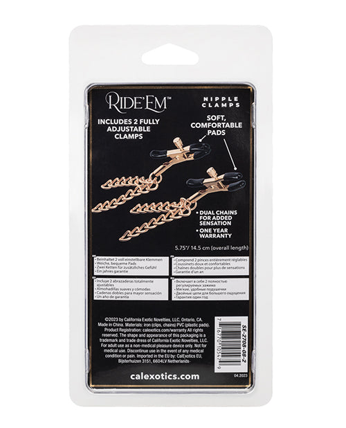 Indulge in the pleasure of the Ride 'em Premium Denim Collection Nipple Clamps and explore new levels of excitement and stimulation. Let your desires take the reins and enjoy the thrill of this stylish and sensual accessory.