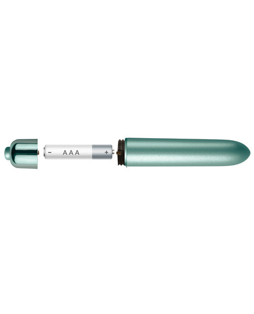 Meet the Touch of Velvet 10 Function Bullet. Smooth, sensual and utterly enchanting, this little vibe is perfect for sensual caresses and igniting sweet spots with its magical functions for orgasms that blossom again and again. 10 functions of vibration ensure you can generously deliver sensual stimulation to your sweetest spots. The velvet bullet's matte finish is fully waterproof so you can take it on your aquatic adventures.Easy-to-use button on the base for effortless control Material: ABS Color: Green Dimensions: ircumference: 2.2 inches Insertable Length: 3 inches Length: 3.75 inches Battery Info: 1 x AAA (not included)