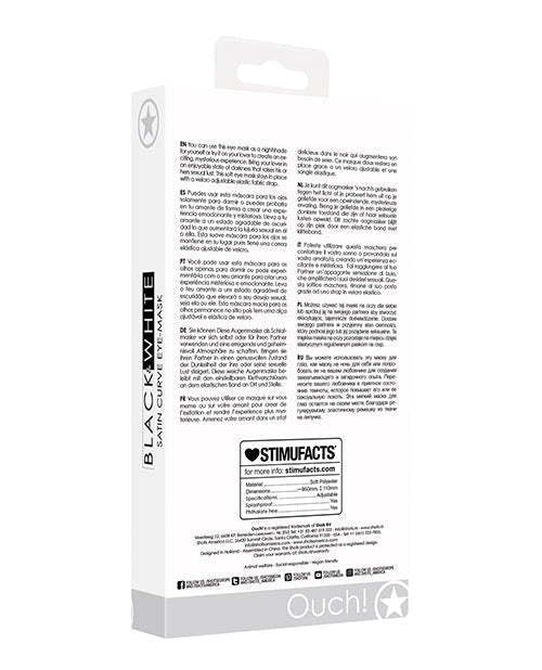Shots Ouch Black & White Satin Curvy Eye Mask w/Elastic Straps - Black