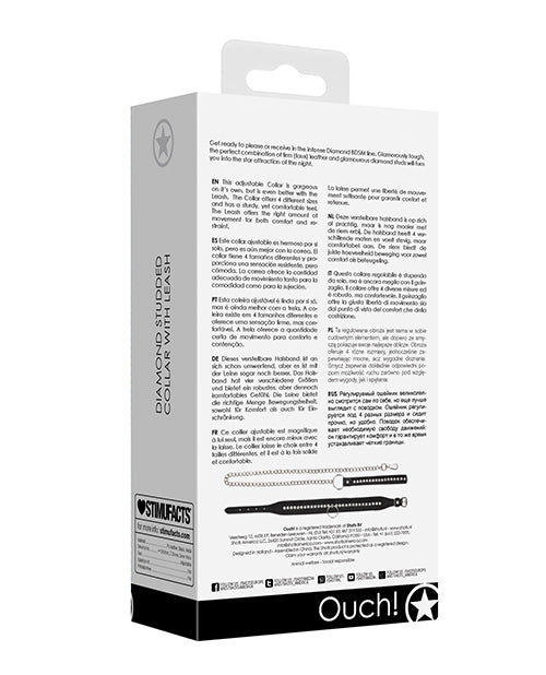 Shots Ouch Diamond Studded Collar w/Leash - Black
