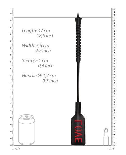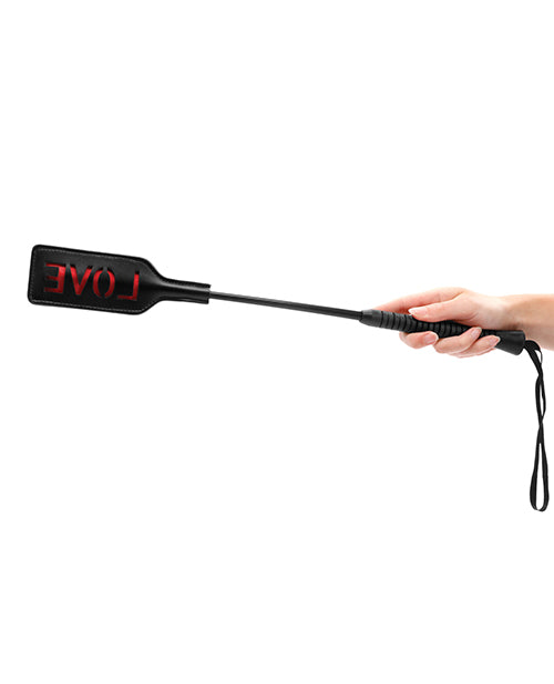 Leave a lasting impression on your partner. This short handled rectangular shaped crop is the perfect way to discipline your partner. Leave a lasting impression on your sub. The word LOVE is reversed so it will show up on their skin.