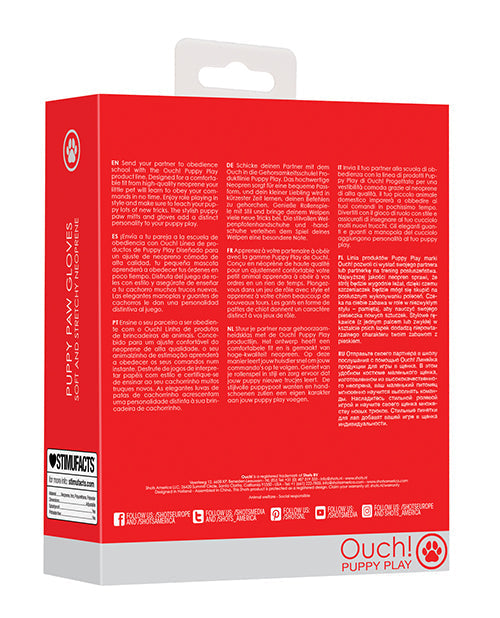 Send your partner to obedience school with the Ouch! Puppy Play product line. Designed for a comfortable fit from high-quality neoprene your little pet will learn to obey your commands in no time. Enjoy role playing in style and make sure to teach your puppy lots of new tricks. The stylish puppy paw mitts and gloves add a distinct personality to your puppy play.