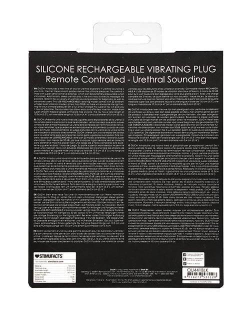 Shots Ouch Urethral Sounding Silicone Rechargeable & Remote Controlled Vibrating Plug - Black