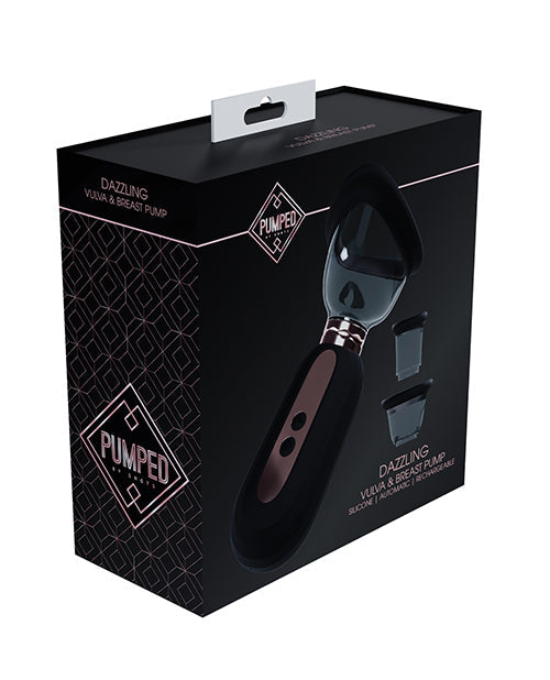 Pump to plump and ensure your sensitive areas are looking their best with the FLOW Vulva & Breast pump by Shots. This high quality pump uses quick and efficient vacuum suction to help firm up and increase the size of your breasts and vulva, along with their sensitivity, making this the perfect accessory for pre-bedroom preparation. The cups are designed with a silky smooth, comfortable silicone seal, that prevents air or moisture from entering. To use, simply place the cup over the desired area, activate the function buttons, and let the sensations whisk you away. Works with all different breast sizes. Use it no longer then 20 -30 minutes for both breasts and/or vulva, and only pump to a comfortable feel. This kit contains 1 vulva cup, 1 breast cup, 1 clitoral cup and a F1-motor powerful pump.